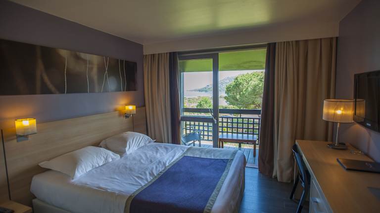 Die 120 Zimmer des Hôtel Castell'Verde bieten eine einfache Einrichtung und sind mit Klimaanlage ausgestattet. Jedes Zimmer verfügt über eine Terrasse mit Blick auf den Garten oder das Meer. Zur weiteren Ausstattung gehören ein Flachbild-TV, eine Küche mit Kühlschrank, Herd, Mikrowelle und Geschirrspüler sowie ein eigenes Bad mit Dusche und Haartrockner. WLAN steht den Gästen kostenlos zur Verfügung.
