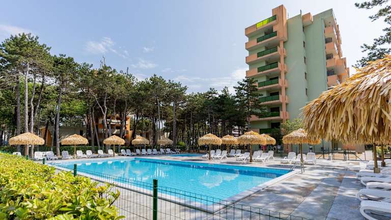 Das Hotel Castello befindet sich in Bibione, einer beliebten Ferienregion in der Region Venetien. Es liegt in der Nähe der Strände Lido del Sole und Bibione Pineda, die für ihre Schönheit und ihren feinen Sand bekannt sind. In der Umgebung gibt es auch viele Möglichkeiten zum Radfahren und Erkunden der Natur. Der Strand von Bibione ist nur 1,3 km vom Hotel entfernt und der Parco Zoo Punta Verde ist 10 km entfernt. Der Flughafen Triest ist etwa 70 km entfernt.