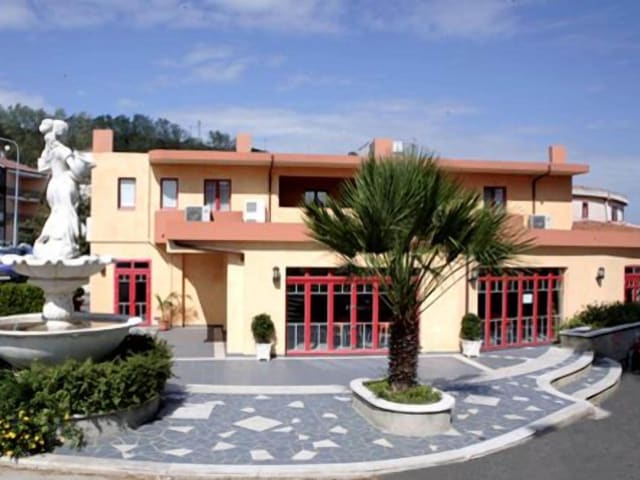 Das Hotel Castelmonardo in Filadelfia bietet schlichte und klassische Unterkünfte mit einem Garten und kostenfreien Privatparkplätzen. Von hier aus erreichen Sie in nur 20 Minuten Fahrt die Sandstrände von Pizzo Calabro. Die Zimmer sind klimatisiert und verfügen über kostenloses WLAN, einen Balkon mit Blick auf die Berge und einen TV. Das private Badezimmer ist mit einer Dusche, einem Haartrockner und kostenlosen Pflegeprodukten ausgestattet. Morgens erwartet Sie ein süßes italienisches Frühstück mit Croissants und Heißgetränken. Das Hotel verfügt auch über ein Restaurant, das italienische Gerichte und Pizza anbietet, sowie eine Bar. Das Hotel Castelmonardo liegt 30 km von Vibo Valentia und 40 Fahrminuten von Lamezia Terme entfernt.