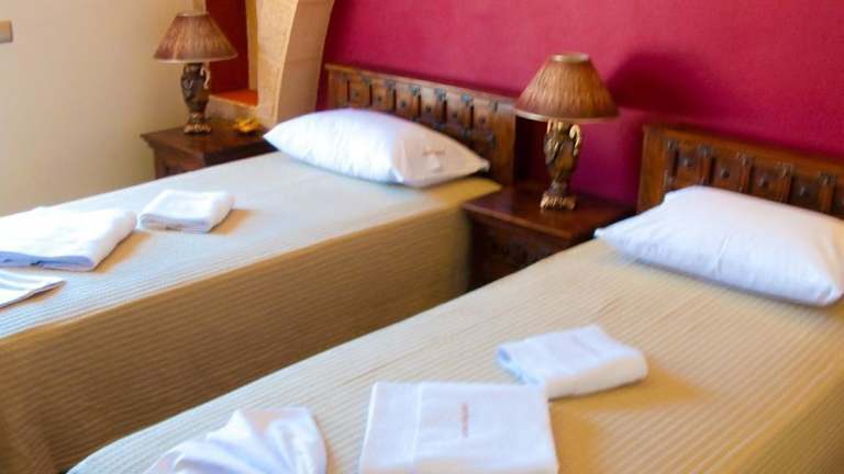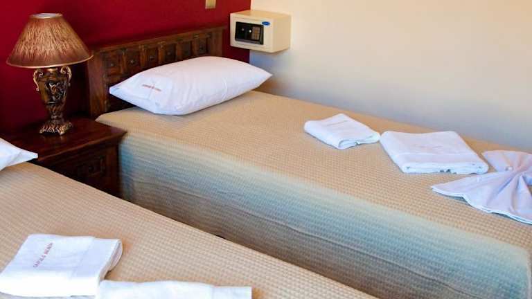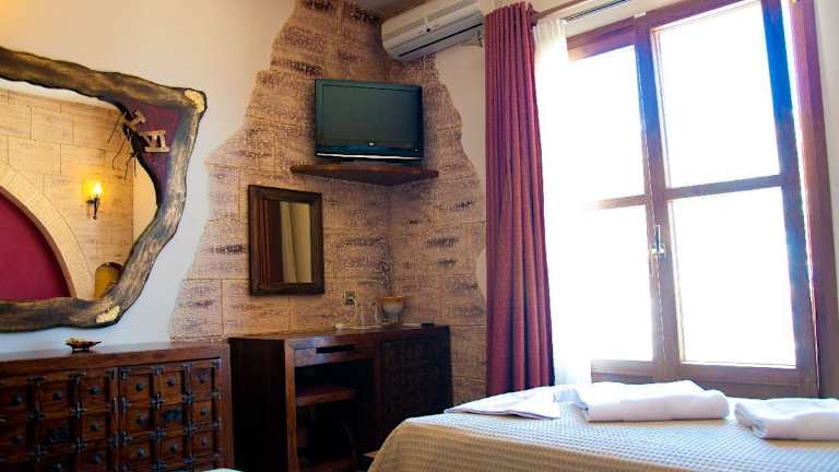 Die klimatisierten Zimmer im Castelo Beach Hotel sind elegant gestaltet und bieten einen atemberaubenden Blick auf die Ägäis. Die Zimmer verfügen über mittelalterliche Details wie geschnitzte Betten und verfügen über Annehmlichkeiten wie Sat-TV, einen Kühlschrank und einen eigenen Balkon. Einige Zimmer sind auch mit einer Küchenzeile und einer Massagedusche ausgestattet.
