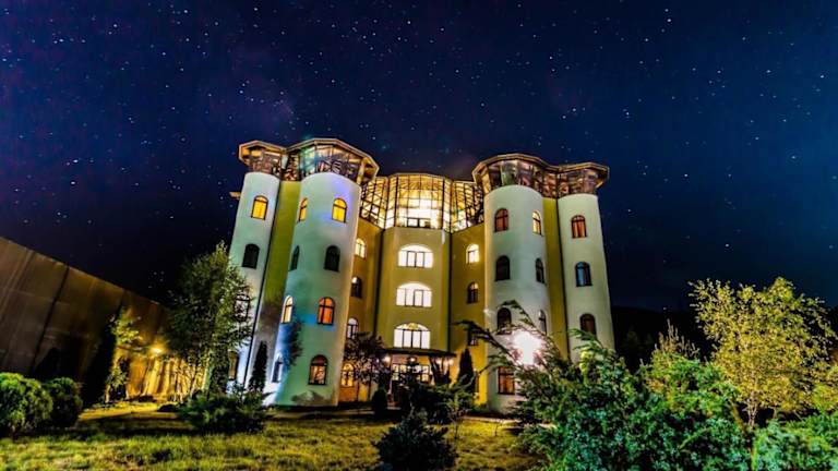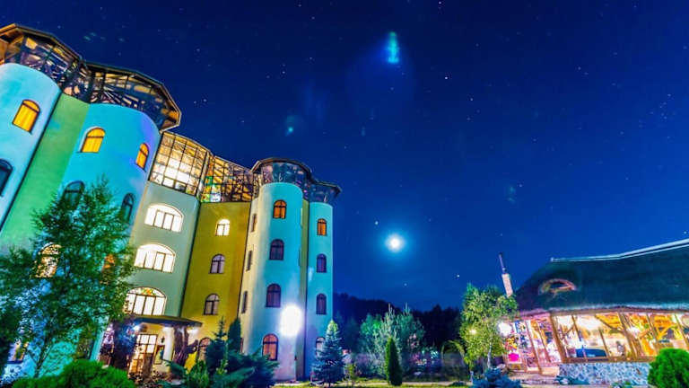 Das Hotel Castelul de Vis liegt am Eingang der Stadt Petrosani, nur 300 m vom Fluss Jiu entfernt. Diese Lage bietet eine gute Ausgangsbasis für Erkundungen in der Region. In der Nähe des Hotels befinden sich Lebensmittelgeschäfte, die in nur 10 Minuten zu Fuß erreichbar sind. Der Bahnhof von Petrosani ist nur 10 Fahrminuten entfernt und der Nationalpark Defileul Jiului ist in 15 Fahrminuten erreichbar. Die Skipisten Parang und Straja liegen jeweils 20 km vom Hotel entfernt.