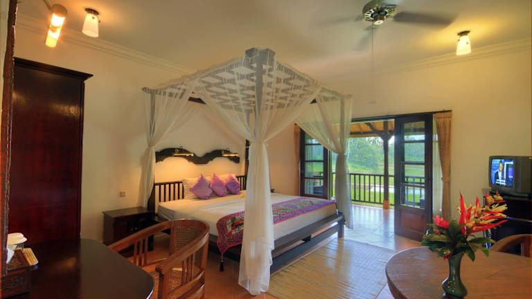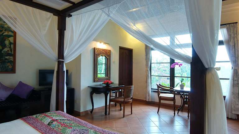 Die traditionellen balinesischen Villen im Cempaka Belimbing Villa sind mit Strohdächern und einer Auswahl an Ventilatoren oder Klimaanlagen ausgestattet. Jede Villa verfügt über einen Fernseher mit Sat-Kanälen, eine Minibar und einen gemütlichen Sitzbereich.