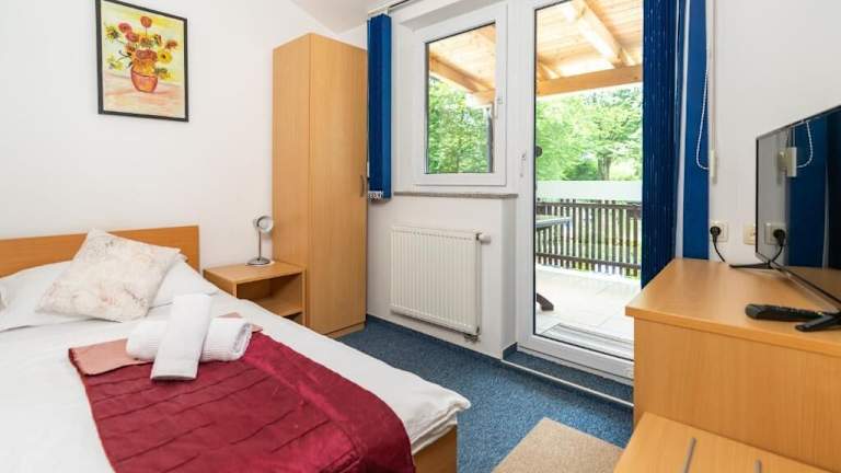 Die Zimmer im Hotel Center Bohinjsko Jezero sind neu ausgestattet, hell und geräumig. Jedes Zimmer verfügt über einen Balkon, auf dem Sie die frische Luft und den Blick auf die Umgebung genießen können. Das angenehme Ambiente und die begrenzte Anzahl von Zimmern sorgen für einen entspannten und komfortablen Aufenthalt. Das freundliche Personal steht Ihnen jederzeit zur Verfügung und erfüllt Ihnen gerne Ihre Wünsche.