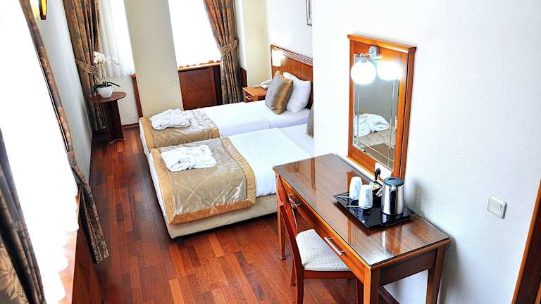 Das Hotel Centrum Istanbul bietet 48 Zimmer. Es ist mit einem Aufzug ausgestattet und verfügt über einen Empfangsbereich mit deutsch- und englischsprachigem Personal. Zu den zusätzlichen Services zählen eine Gepäckaufbewahrung, ein Safe, eine Wechselstube sowie Hilfestellungen bei der Buchung von Ausflügen. WLAN ist im gesamten Hotel verfügbar. Gäste können ihr Fahrzeug in einer Garage oder auf einem Parkplatz abstellen, beide gegen Gebühr. Die Unterkunft bietet weiterhin einen 24-Stunden-Sicherheitsdienst, einen Zimmerservice, einen Wäscheservice sowie einen Concierge-Service.
