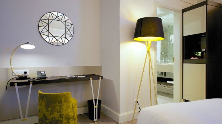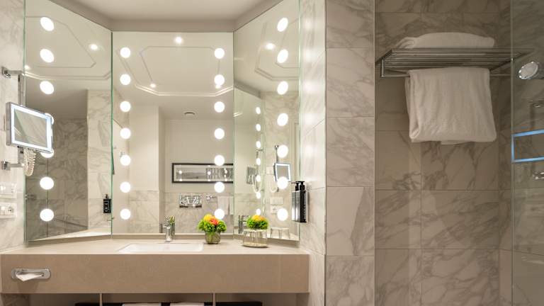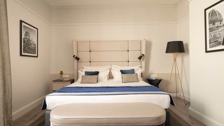 Die modernen Zimmer im Hotel Cerretani Firenze - MGallery Collection sind klimatisiert und bieten WLAN, eine Minibar und Sat-TV mit Pay-per-View-Kanälen. Jedes Zimmer ist elegant eingerichtet und verfügt über ein eigenes Bad mit luxuriösen Hausschuhen.
