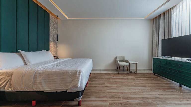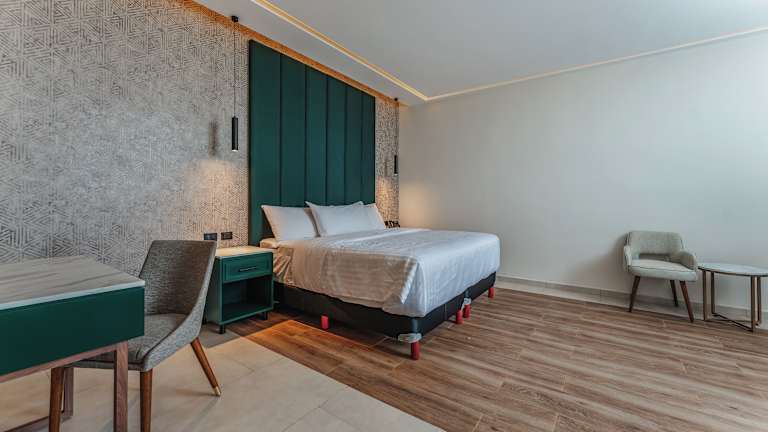 Die klimatisierten Zimmer der Unterkunft sind mit einem Schreibtisch, einer Kaffeemaschine, einer Minibar, einem Safe, einem Flachbild-TV sowie einem eigenen Badezimmer mit Dusche ausgestattet. Bettwäsche und Handtücher sind ebenfalls vorhanden.