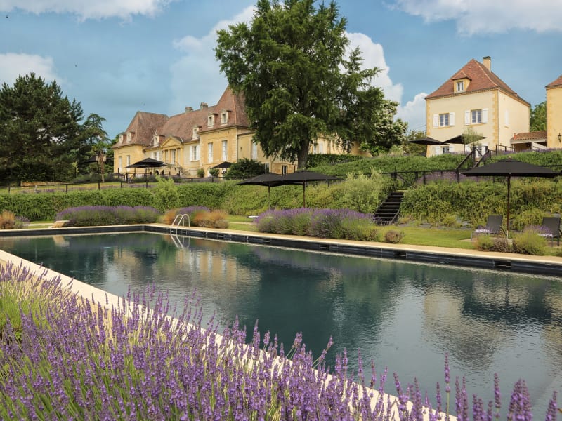 Dieses kleine, spätmittelalterliche Chateau liegt umgeben von seinem eigenen Schlosspark vor den Toren der Weinstadt Bergerac. Hinter seiner romantischen Fassade aus gelbem Tuffstein verbergen sich 15 Zimmer, darunter 2 Suiten und ein Apartment. Das moderne Interieur vermischt sich darin mit der Originalarchitektur aus dem 17. Jahrhundert. Alternativ können Familien oder Freunde von 6 bis 8 Personen wenige Schritte vom Hauptgebäude entfernt eine eigene Villa mieten. Die luxuriös ausgestatteten Villen haben drei bis vier Schlafzimmer, jedes Schlafzimmer mit eigenem Badezimmer, darüber hinaus hat jede Villa eine voll ausgestattete Küche, Wohnzimmer, eine Terrasse mit Garten und einen privaten Swimmingpool. Ein Besuch im Château Les Merles beginnt mit einem Glas Champagner und französischen Appetizern. Zu alledem führt das 4-Sterne-Hotel ein hervorragendes Bistro und Restaurant mit junger französischer Gourmetküche und einem guten Angebot regionaler Weine aus dem Périgord. Neben dem Restaurant und einem 9-Loch-Golfplatz zählen Salons mit Kamin, Bibliothek und einem Grand Piano zum Hotel. Im Sommer lockt ein perfekt gepflegter Swimmingpool mit Sonnenschirmen und Liegen in den Garten hinter dem Schloss. Es gibt auch einen Tennisplatz.