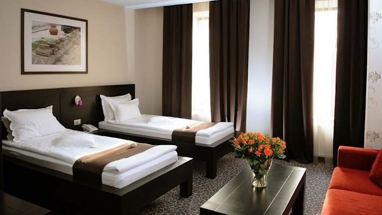 Das Hotel Cherica befindet sich in einem historischen Gebäude aus dem Jahr 1896 und bietet seinen Gästen eine ideale Lage im Geschäfts- und Touristenviertel von Constanta. Mit geräumigen Zimmern, individuell regulierbarer Klimaanlage und kostenfreiem WLAN ist das Hotel der perfekte Ort für einen angenehmen Aufenthalt. Freuen Sie sich auf frische Schnittblumen, ein stilvolles Dekor und moderne Annehmlichkeiten. Die luxuriösen Suiten verfügen über einen separaten Wohnbereich, Tee- und Kaffeezubehör sowie eine gut gefüllte Minibar. Das Hotel bietet auch einen videoüberwachten Parkplatz und eine rund um die Uhr besetzte Rezeption.