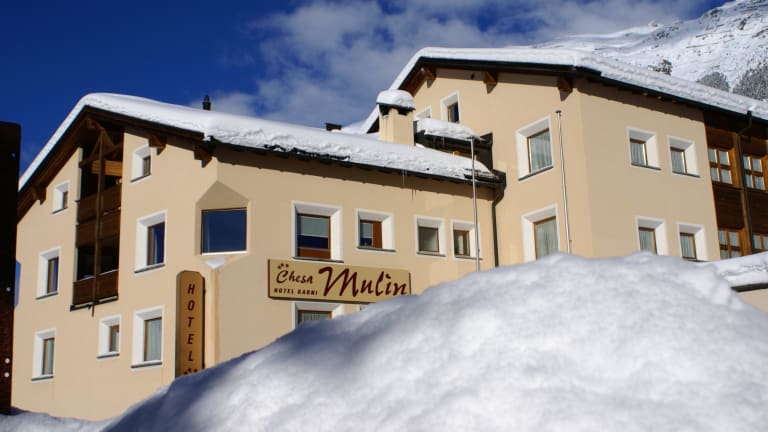 Das Hotel Garni Chesa Mulin liegt zentral und doch sehr ruhig mitten in Pontresina. In der Nähe: Wandergebiete, Skigebiete (10 Min. mit Bus), Bushaltestelle, Bellavita Erlebnisbad und Spa, Parkhaus, Restaurants