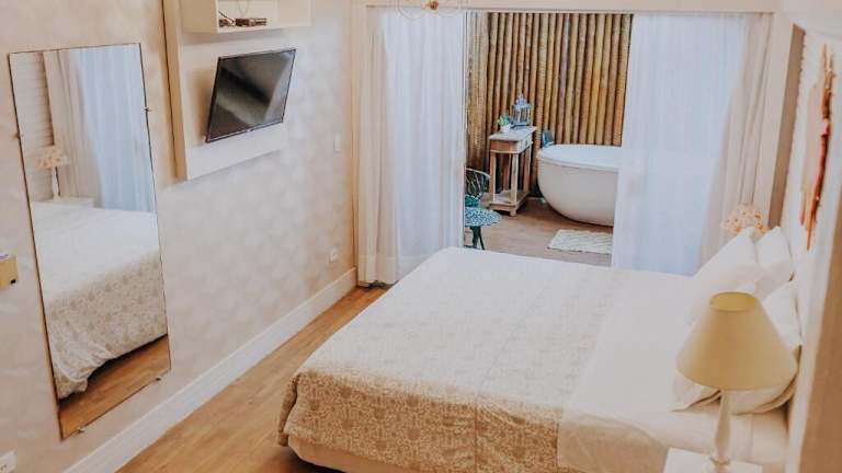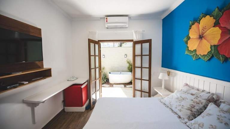 Die Zimmer im Hotel Chez Louise et Louis Pé na Areia sind klimatisiert und verfügen über einen Flachbild-Kabel-TV, einen DVD-Player und einen Safe. Sie sind geschmackvoll eingerichtet und mit hochwertiger Blue Gardenia Bettwäsche ausgestattet. Im eigenen Bad stehen Ihnen kostenlose L'Occitane Pflegeprodukte zur Verfügung.