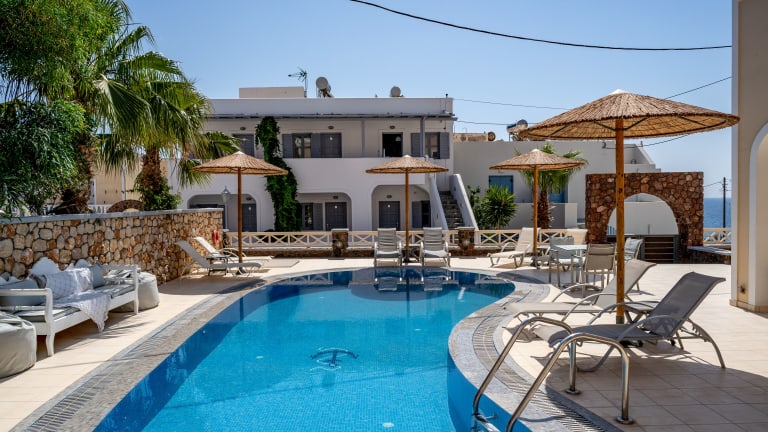 Das Hotel Chez Sophie auf der Insel Santorin bietet seinen Gästen einen wunderbaren Aufenthalt mit herrlichem Meerblick oder Bergblick. Der nahegelegene Strand Kamari und die Vielzahl an Restaurants und Tavernen in der Umgebung machen dieses Hotel zu einer idealen Wahl für einen erholsamen Urlaub. Genießen Sie Ihren Aufenthalt am Außenpool und nutzen Sie das kostenfreie WLAN in den öffentlichen Bereichen.