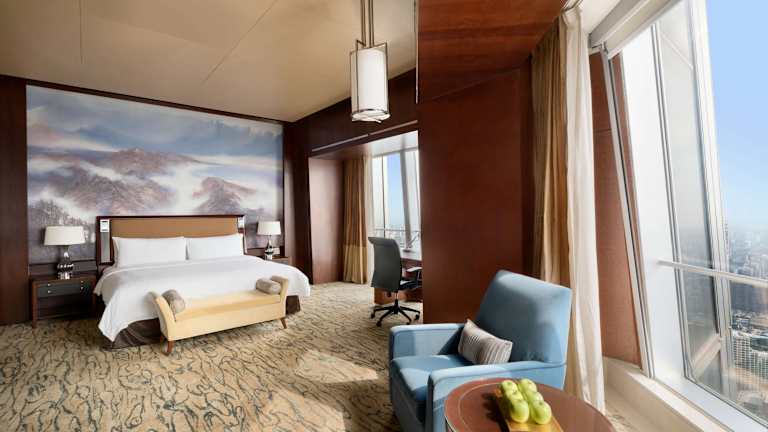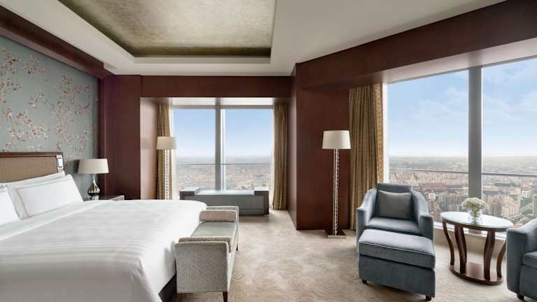Das Shangri-La China World Summit Wing liegt im China World Trade Centre in Peking und bietet seinen Gästen eine erstklassige Lage in der Nähe des zentralen Geschäftsviertels. Der internationale Flughafen Peking Capital ist etwa 45 Minuten entfernt und das Hotel bietet direkten Zugang zur U-Bahnstation Guomao.