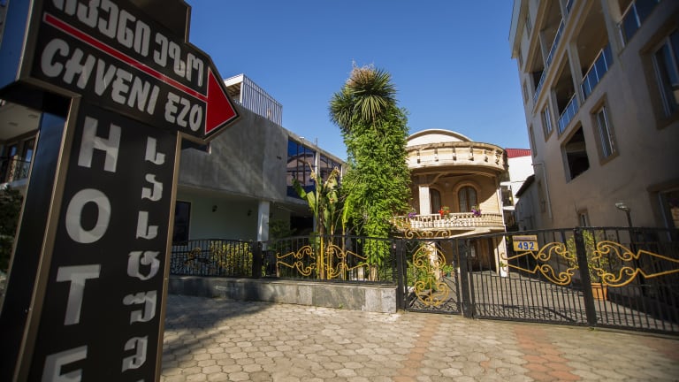 Das Hotel Chveni Ezo ist eine ideale Wahl für einen Aufenthalt in Kobuleti. Es liegt nur 90 m von der Schwarzmeerküste entfernt und bietet kostenfreies WLAN sowie eine 24-Stunden-Rezeption. Genießen Sie die schlicht dekorierten Zimmer mit kräftigen Farben und den Blick auf den hoteleigenen Garten. Das Restaurant serviert leckere georgische und europäische Gerichte und an der Hotelbar können Sie entspannen. Die zentrale Lage ermöglicht es Ihnen, den zentralen Park von Kobuleti in nur 700 m Entfernung zu besuchen. Der Bahnhof von Kobuleti ist 7 km entfernt und der Flughafen Batumi erreichen Sie nach 30 km. Kostenfreie Privatparkplätze stehen Ihnen zur Verfügung und gegen einen Aufpreis kann ein Flughafentransfer organisiert werden.