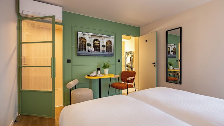 Das Hotel befindet sich in Paris, auf halber Strecke zwischen dem Place de la République und dem Friedhof Père Lachaise. Der U-Bahnhof Parmentier ist in 2 Gehminuten erreichbar, während der Flughafen Orly etwa 25 km und der Flughafen Charles de Gaulle rund 40 km entfernt ist.