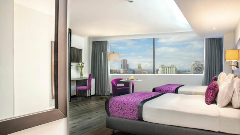 Hotel City Bog Expo Museo präsentiert sich mit trendigen violetten Innenräumen, die mit weißen Orchideen geschmückt sind. Die Gäste können sich auf moderne Annehmlichkeiten, eine 24-Stunden-Rezeption sowie verschiedene Dienstleistungen wie einen Conciergeservice und einen Zimmerservice freuen.