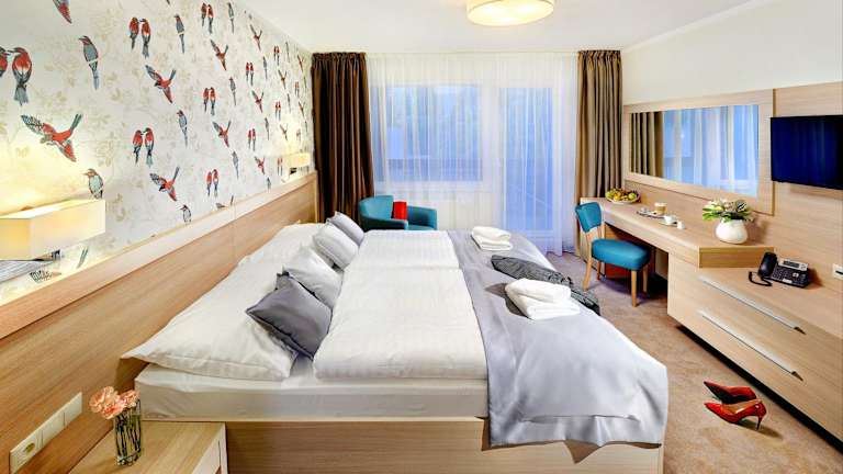 Die Zimmer im Hotel Park sind komfortabel und bieten einen Balkon sowie ein eigenes Badezimmer. Genießen Sie den Komfort und die Annehmlichkeiten, die Ihnen zur Verfügung stehen.