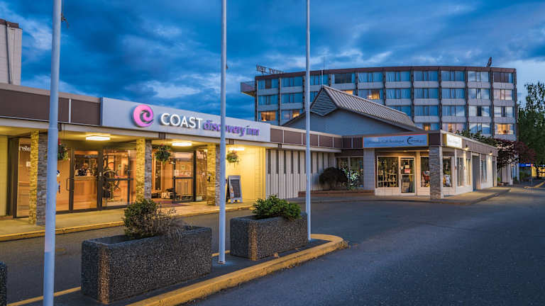 Das Coast Discovery Inn in Campbell River bietet modern ausgestattete Zimmer und Annehmlichkeiten wie kostenfreies WLAN und Parkmöglichkeiten. Das Hotel liegt zentral im Herzen von Campbell River und ist nur wenige Gehminuten von Sehenswürdigkeiten und dem Hafen entfernt. Genießen Sie den Komfort eines Fitnesscenters, eines Whirlpools und eines Businesscenters. Das kostenfreie Frühstück am Morgen bietet eine Vielzahl an Speisen, um den Tag gut zu beginnen.