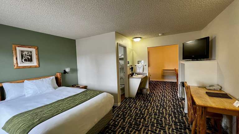 Die Zimmer im Cody Legacy Inn & Suites sind hell und komfortabel eingerichtet. Jedes Zimmer verfügt über einen Kühlschrank und eine Mikrowelle, so dass Sie Ihre eigenen Snacks und Getränke zubereiten können. Kostenloses WLAN und ein Flachbild-Kabel-TV sorgen für Unterhaltung und Komfort.