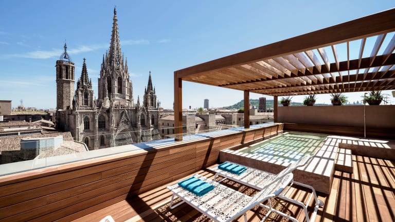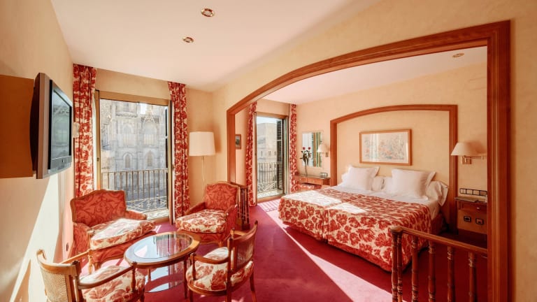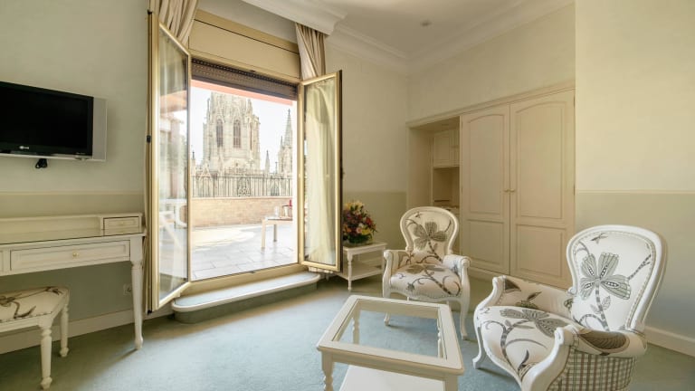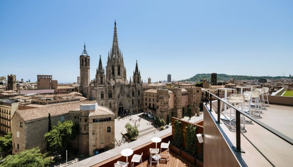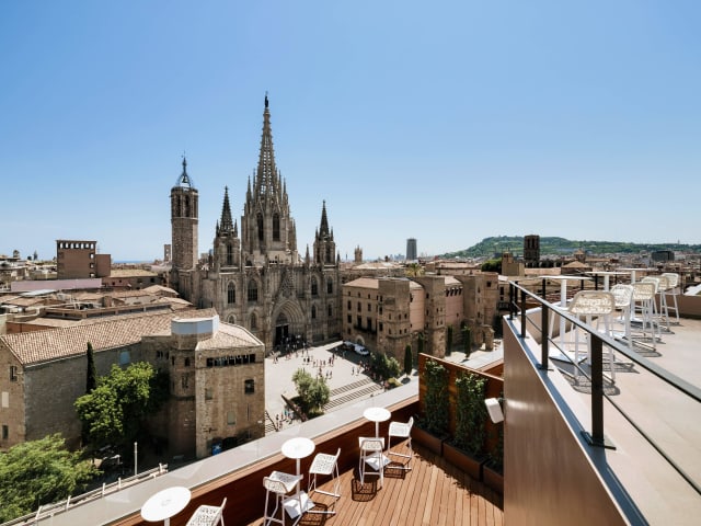 It is situated in a privileged location right opposite the Barcelona Gothic Cathedral, 5-minute walk from Plaza Catalunya.