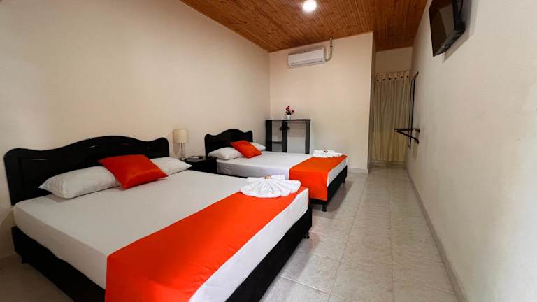 Die Zimmer im Hotel Colonial Villavieja sind komfortabel und stilvoll eingerichtet. Jedes Zimmer verfügt über einen Flachbild-Kabel-TV und eine Klimaanlage, die für angenehme Temperaturen sorgt. Das private Badezimmer bietet alles, was Sie für einen erholsamen Aufenthalt benötigen.