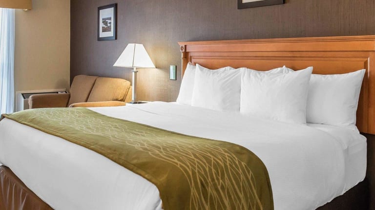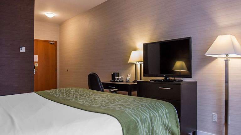 Das Comfort Inn Brockville bietet 78 Nichtraucherzimmer auf 2 Etagen. Die Zimmer sind modern eingerichtet und verfügen über Annehmlichkeiten wie eine Klimaanlage, einen 42-Zoll-LCD-Plasma-TV, eine Kaffeemaschine und kostenloses WLAN. Einige Zimmer sind mit zusätzlichen Annehmlichkeiten wie einer Mikrowelle, einem Kühlschrank und einer Whirlpool-Badewanne für 2 Personen ausgestattet. Es gibt auch rollstuhlgerechte Zimmer mit barrierefreiem Badezimmer.