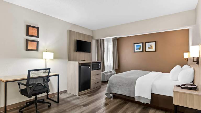 Das Quality Inn East Liverpool bietet seinen Gästen einen komfortablen und erholsamen Aufenthalt in East Liverpool. Das Hotel verfügt über freundliches Personal, kostenfreies WLAN und rollstuhlgerechte Einrichtungen. Gäste können im Innenpool entspannen und im Fitnessstudio trainieren. Die Zimmer sind mit Klimaanlage, Balkon oder Terrasse, Kühlschrank, Mikrowelle und Tee-/Kaffeemaschine ausgestattet. Das Hotel bietet auch barrierefreie Zimmer mit rollstuhlgerechten Badezimmern.