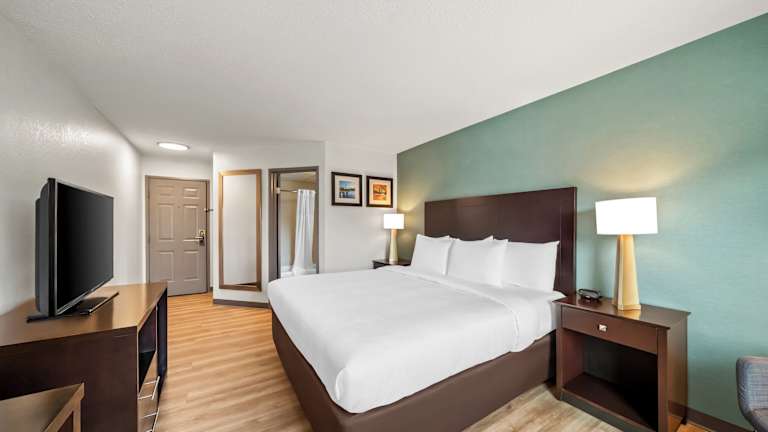Das Hotel bietet ein kostenfreies warmes Frühstück mit einer Auswahl an Speisen wie Eiern, Fleisch, Joghurt, frischem Obst, Müsli und warmen Waffeln. Es gibt auch ein Restaurant und eine Bar, wo Gäste weitere Mahlzeiten und Getränke genießen können.