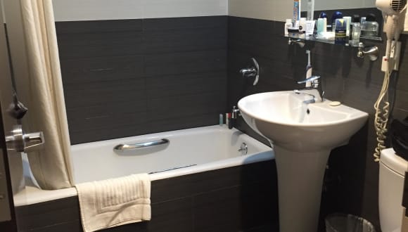 Die Zimmer im Hotel Comfort Inn Manhattan Bridge sind komfortabel und bieten Ihnen alles, was Sie für einen angenehmen Aufenthalt benötigen. Die Standardzimmer mit kostenfreiem Frühstück sind Nichtraucherzimmer und verfügen über eine individuell regulierbare Klimaanlage, ein Sofa, einen Kaffee- und Teezubereiter, ein Telefon, kostenfreies WLAN, Sat-TV und ein Badezimmer mit Badewanne oder Dusche, WC und Föhn.
