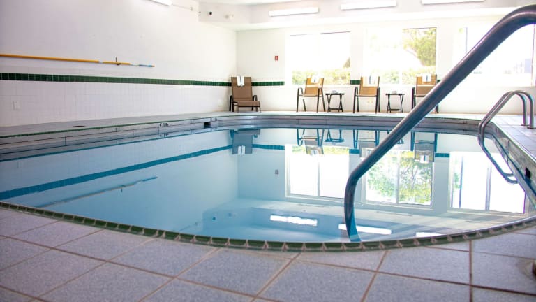 Im Hotel gibt es einen beheizten Innenpool und einen Außenpool, die sich perfekt für regelmäßiges Aquatraining und aktive Erholung eignen. Ein Whirlpool im Wellnessbereich bietet zusätzliche Entspannungsmöglichkeiten. Für diejenigen, die gerne aktiv bleiben, gibt es ein Fitnessstudio und ein Spa.