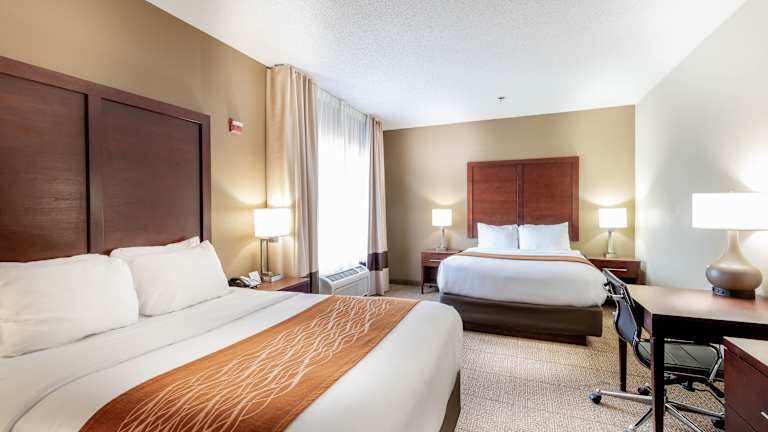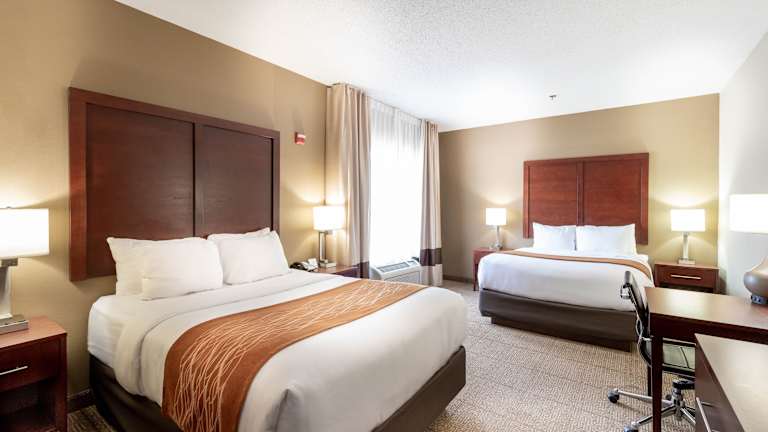 Die Zimmer im Comfort Inn & Suites Love Field - Dallas Market Center sind komfortabel eingerichtet und verfügen über Annehmlichkeiten wie kostenfreies WLAN, einen Flachbild-TV, eine Mikrowelle und einen Kühlschrank. Die Zimmer sind Nichtraucherzimmer und bieten einen Schreibtisch, ein Bügeleisen und ein Bügelbrett sowie Kaffee- und Teezubehör.