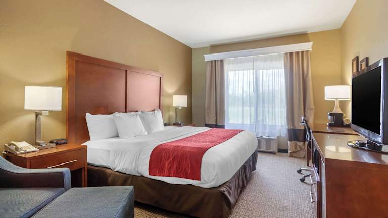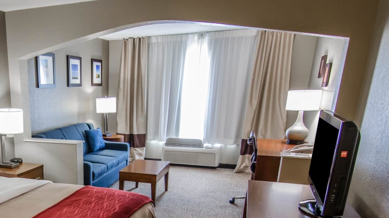 Das Comfort Inn & Suites Hotel bietet insgesamt 70 Nichtraucherzimmer auf 3 Etagen, die bequem mit einem Aufzug erreichbar sind. Zur Ausstattung gehören kostenfreies WLAN, ein Safe an der Rezeption, ein Zimmerservice und eine Münzwäscherei. Geschäftsreisende können das Businesscenter nutzen und von den Kopier- und Faxdiensten profitieren. Alle Zimmer verfügen über Annehmlichkeiten wie einen Haartrockner, eine Kaffeemaschine, ein Bügeleisen/-brett und Kabel-TV. Einige Zimmer sind mit einem Kühlschrank und einer Mikrowelle ausgestattet.