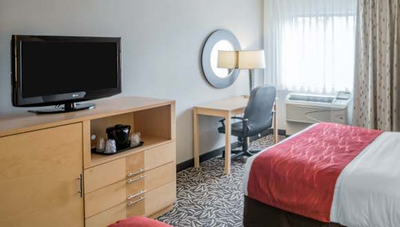 Die Zimmer im Comfort Inn - NYS Fairgrounds Hotel sind mit allen Annehmlichkeiten ausgestattet, die Sie für einen komfortablen Aufenthalt benötigen. Eine Kaffeemaschine, ein Haartrockner und ein Bügeleisen/-brett sind in jedem Zimmer vorhanden. Für Gäste, die etwas mehr Luxus wünschen, stehen Deluxe-Zimmer mit Whirlpool, Zimmer mit Kingsize-Bett und Suiten mit Mikrowelle und Kühlschrank zur Verfügung.