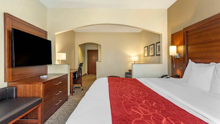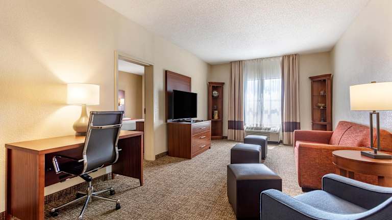 Die 73 Nichtraucherzimmer des Comfort Suites Southaven I-55 erstrecken sich über 4 Etagen und sind mit modernen Annehmlichkeiten ausgestattet. Jedes Zimmer verfügt über eine Klimaanlage, ein bequemes Sofa, einen großen Schreibtisch, eine Kaffeemaschine, eine Mikrowelle, einen Kühlschrank, ein Bügeleisen/-brett, einen Haartrockner, Kabel-TV und WLAN. Rollstuhlgerechte Zimmer mit barrierefreiem Badezimmer sind ebenfalls verfügbar.