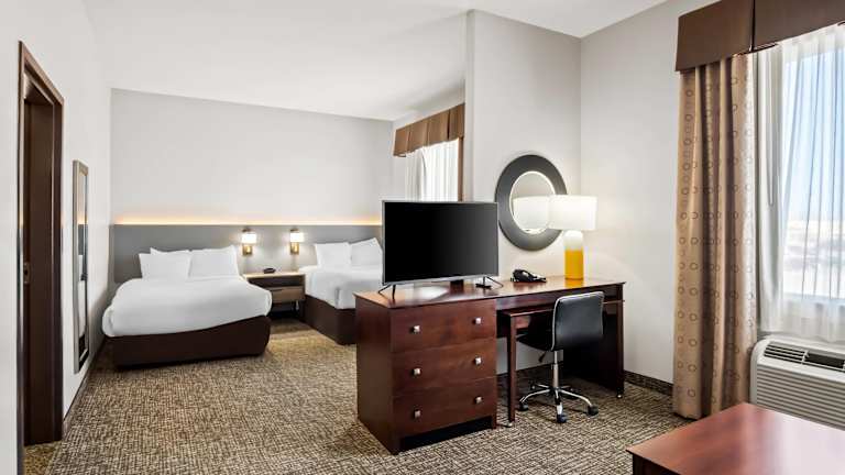Das Comfort Suites Hotel verfügt über einen Innen- und einen Außenpool, in denen die Gäste schwimmen und sich entspannen können. Es gibt auch einen Whirlpool und einen Fitnessraum, in dem die Gäste trainieren können. Geschäftsreisende können das gut ausgestattete Businesscenter nutzen, das auch Tagungsmöglichkeiten bietet. Parkplätze stehen zur Verfügung und Münzbetriebene Wäschemöglichkeiten sind ebenfalls vorhanden.