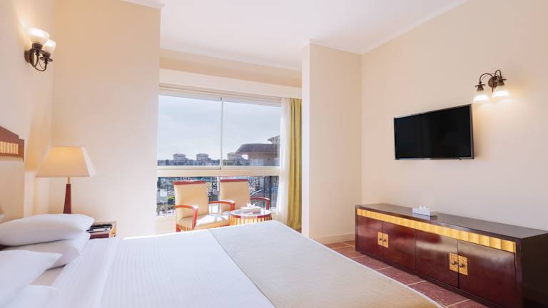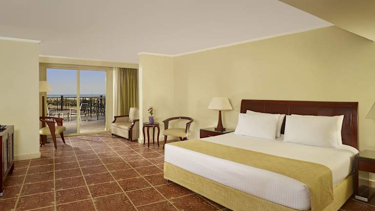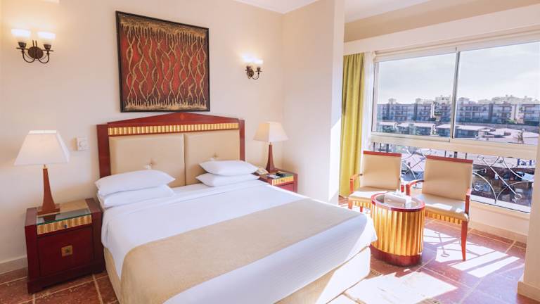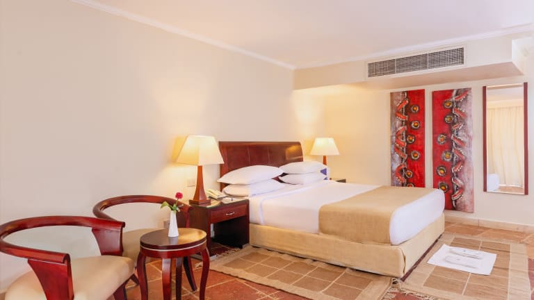 Die Zimmer im Coral Sea Beach Hotel sind komfortabel und klimatisiert. Jedes Zimmer verfügt über einen Balkon oder eine Terrasse mit Blick auf das Rote Meer oder die Gärten. Die Zimmer sind modern und orientalisch gestaltet und verfügen über Annehmlichkeiten wie einen Flachbild-Sat-TV, eine Minibar und ein eigenes Bad.