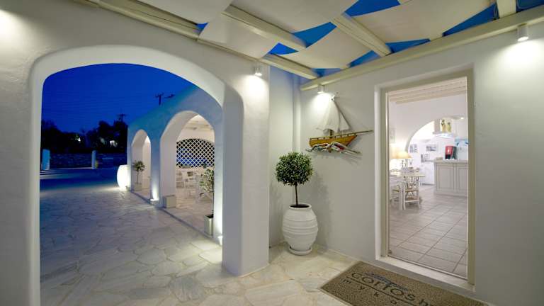 Das Corfos Hotel verfügt über einen großen Meerwasser-Außenpool, der den Gästen tagsüber Entspannung und Erfrischung bietet. Am Abend sorgt eine dezente Beleuchtung und Kerzen für eine romantische Atmosphäre, die Sie von Ihrem Balkon aus genießen können. Das freundliche Personal hilft Ihnen gerne bei der Organisation von Bootstouren zur Insel Delos, einem beliebten Ausflugsziel in der Nähe. Kostenlose Parkplätze stehen an der Unterkunft zur Verfügung.