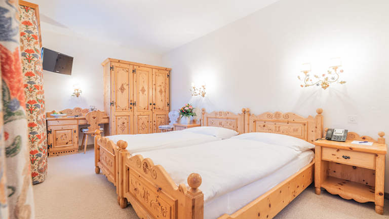 Typische Schweizer Gemütlichkeit Das Hotel Corvatsch ist ganz im typischen Engadiner Stil eingerichtet. Die handgeschnitzten Möbel aus einheimischem Arvenholz verbreiten eine heimelige Urlaubsatmosphäre. Unsere 31 Einzel-, Doppel- und Mehrbettzimmer in verschiedenen Kategorien bieten einen traumhaften Ausblick auf das Bergpanorama.