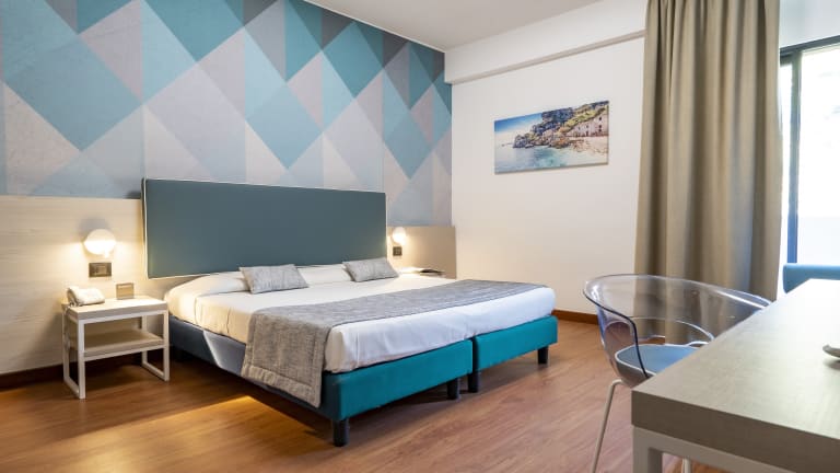 The hotel has 380 comfortable, renovated and well-furnished rooms: Comfort, Sea View Superior, Mini Suite with Jacuzzi. Inside the rooms you can find: bathrooms with shower or bathtub, air conditioning (from 01/06 to 30/09), mini fridge, TV, telephone, safe, terrace and hairdryer. You can choose from 4 different types of rooms: Hill View Comfort, Sea View Superior, Jacuzzi Deluxe Room with a terrace and a private whirlpool, Jacuzzi Garden Room with a 50 sqm roof garden with a mini whirlpool and a private solarium.
