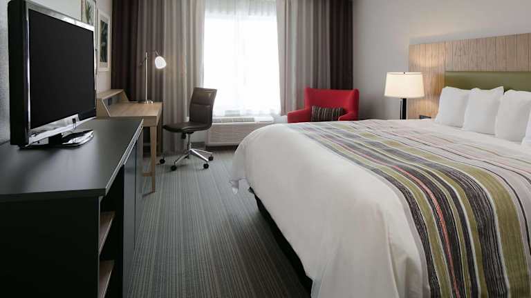 Die Zimmer im Country Inn & Suites by Radisson sind komfortabel und bieten alles, was Sie für einen angenehmen Aufenthalt benötigen. Jedes Zimmer verfügt über eine Kaffeemaschine, einen Fernseher mit Kabel-TV und einen Zimmerservice. Einige Zimmer sind mit einer Whirlwanne ausgestattet, die Ihnen zusätzlichen Komfort bietet. Kostenloses WLAN ist in allen Zimmern verfügbar, damit Sie jederzeit mit Ihren Freunden und Ihrer Familie in Kontakt bleiben können.