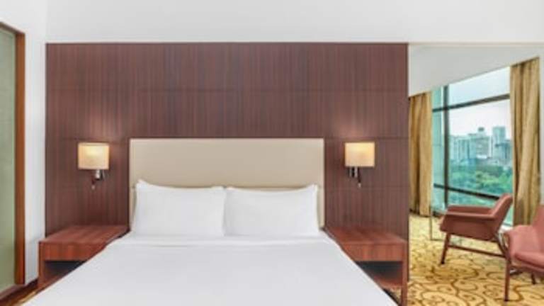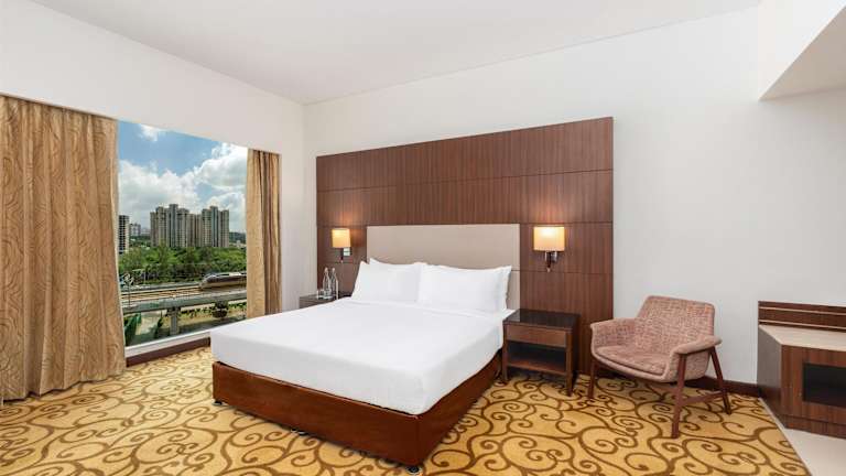 Die 216 Zimmer des Hotels sind komfortabel eingerichtet und verfügen über Annehmlichkeiten wie Klimaanlage, Safe, Minibar und Schreibtisch. Zur Unterhaltung gibt es Sat-TV und kostenfreies WLAN. Die Badezimmer sind mit Dusche oder Badewanne, Haartrockner und Kosmetikartikeln ausgestattet. Einige Zimmer sind rollstuhlgerecht und barrierefrei.