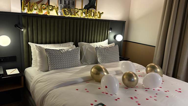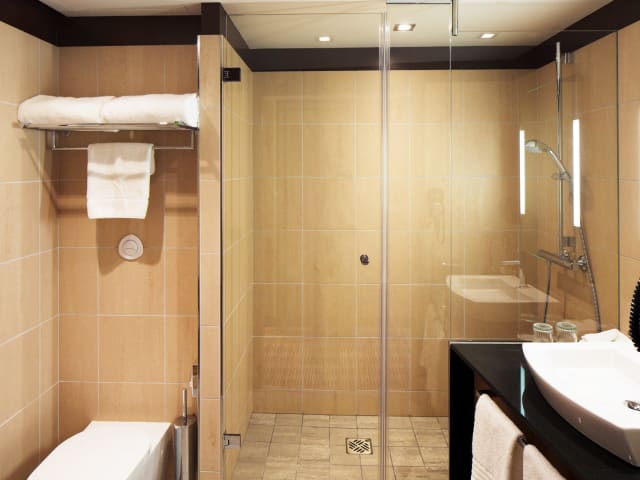 Die Zimmer verfügen über eine Klimaanlage, einen Balkon oder eine Terrasse (in den meisten Zimmern), ein Doppelbett, eine Minibar und einen Safe. Zudem sind Tee- und Kaffeezubereitungsmöglichkeiten, ein Fernseher und kostenpflichtiges WLAN vorhanden. Die Badezimmer sind mit einer Dusche und Badewanne ausgestattet, und Hausschuhe sowie Bademäntel werden bereitgestellt.