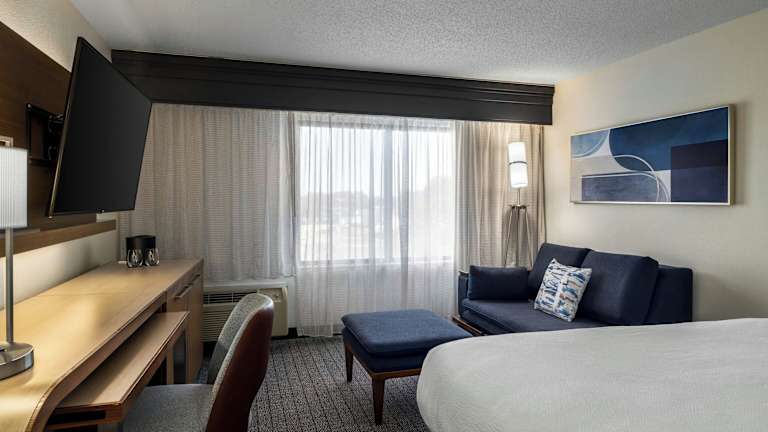 Die Zimmer im Courtyard Richmond Chester sind geräumig und in hellen Farben gehalten. Sie verfügen über raumhohe Fenster, die viel Tageslicht hereinlassen, sowie über einen gemütlichen Sitzbereich. Zur Ausstattung gehören ein Flachbild-TV mit Kanälen wie HBO und ESPN, ein Bügeleisen/-brett und luxuriöse Bettwäsche. Kostenloses WLAN ist ebenfalls vorhanden.