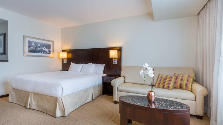 Das Hotel verfügt über 120 stilvolle Zimmer, die mit modernen Annehmlichkeiten ausgestattet sind. Jedes Zimmer bietet ein komfortables Bett, einen 32-Zoll-LCD-TV, kostenfreies Highspeed-WLAN und schallisolierte Fenster. Die Zimmer sind klimatisiert und bieten einen angenehmen Rückzugsort nach einem ereignisreichen Tag.