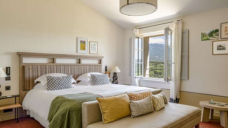 Die klimatisierten Zimmer des Hotels Crillon le Brave sind komfortabel eingerichtet und verfügen über ein eigenes Bad. Zur Ausstattung gehören ein Flachbild-TV und eine Minibar. Einige Zimmer bieten zudem einen Kamin und einen herrlichen Blick auf den Berg Ventoux. WLAN-Zugang ist in allen Zimmern verfügbar.