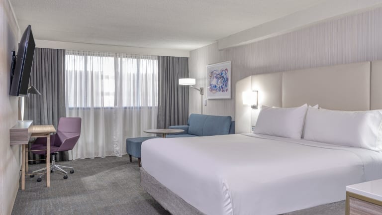 Das Crowne Plaza Indianapolis-Airport bietet moderne Zimmer, die mit Annehmlichkeiten wie Klimaanlage, Kaffeemaschine und Flachbildfernseher ausgestattet sind. Die Gäste können zwischen verschiedenen Zimmerkategorien wählen, darunter auch rollstuhlgerechte Zimmer mit barrierefreiem Badezimmer. Kostenloses WLAN steht in allen Zimmern zur Verfügung, so dass die Gäste stets mit der Welt verbunden bleiben können.