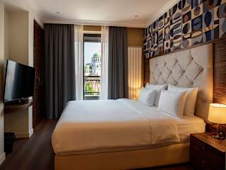 Das Crystal Hotel in Belgrad bietet luxuriös ausgestattete Unterkünfte und eine exklusive Lage nahe dem Dom des Heiligen Sava. Das Hotel verfügt über ein reichhaltiges Frühstücksbuffet, eine Bar und ein Restaurant mit mediterranen und französischen Gerichten. Die meisten Zimmer bieten einen einzigartigen Blick auf die Umgebung und den Dom. Das Hotel bietet auch einen Schönheitssalon, ein Fitnesscenter und Konferenzräume.