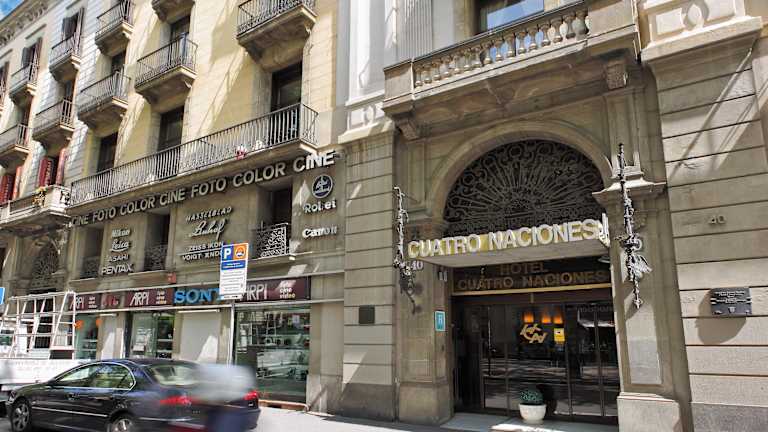 Das Hotel Cuatro Naciones befindet sich direkt am berühmten Boulevard Las Ramblas in Barcelona, was bedeutet, dass Sie mitten im Geschehen sind. Der U-Bahnhof Drassanes ist nur ca. 200 m entfernt, so dass Sie bequem die gesamte Stadt erkunden können. Die Kathedrale von Barcelona ist nur 10 Gehminuten entfernt und der alte Hafen der Stadt ist ebenfalls nur 400 m vom Hotel entfernt. In der Nähe, nur 5 Gehminuten entfernt, finden Sie das Gotische Viertel mit einer Vielzahl von Restaurants, Bars und Cafés.