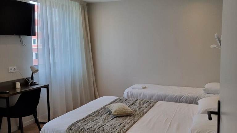 Die Zimmer sind mit einer Klimaanlage, einer Heizung, einem Flachbild-TV, einem Telefon mit Direktwahl, einem Haartrockner und WLAN ausgestattet. Viele Zimmer verfügen über einen Balkon oder eine Terrasse, die einen Blick in den Innenhof bieten. Es stehen Familienzimmer, Nichtraucherzimmer sowie Zimmer mit Schallisolierung zur Verfügung.