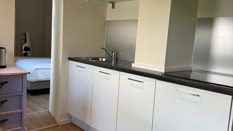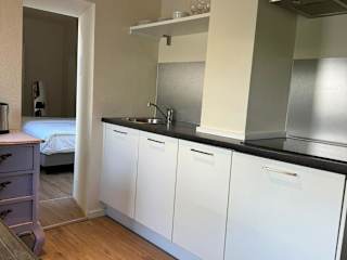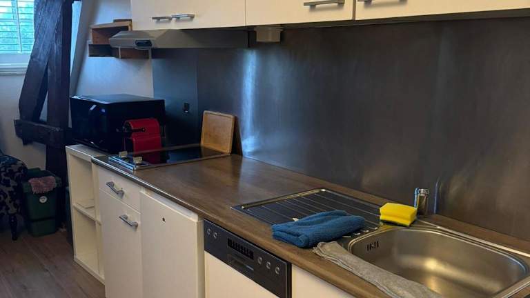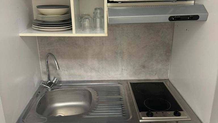 Die Unterkunft ist ausgestattet mit einer voll eingerichteten Küche, die eine Herdplatte und eine Kaffeemaschine umfasst.