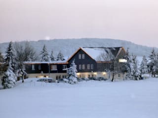 Ausgezeichnete regionale erzgebirgische Küche Gastronomische Versorgung im Restaurant (33 - 100 Plätze) Für Feierlichkeiten Hutzenstube (10 - 18 Plätze), Jagdzimmer (bis zu 50 Plätze, durch Verbindung mit Jagdzimmer bis zu 80 Plätze)